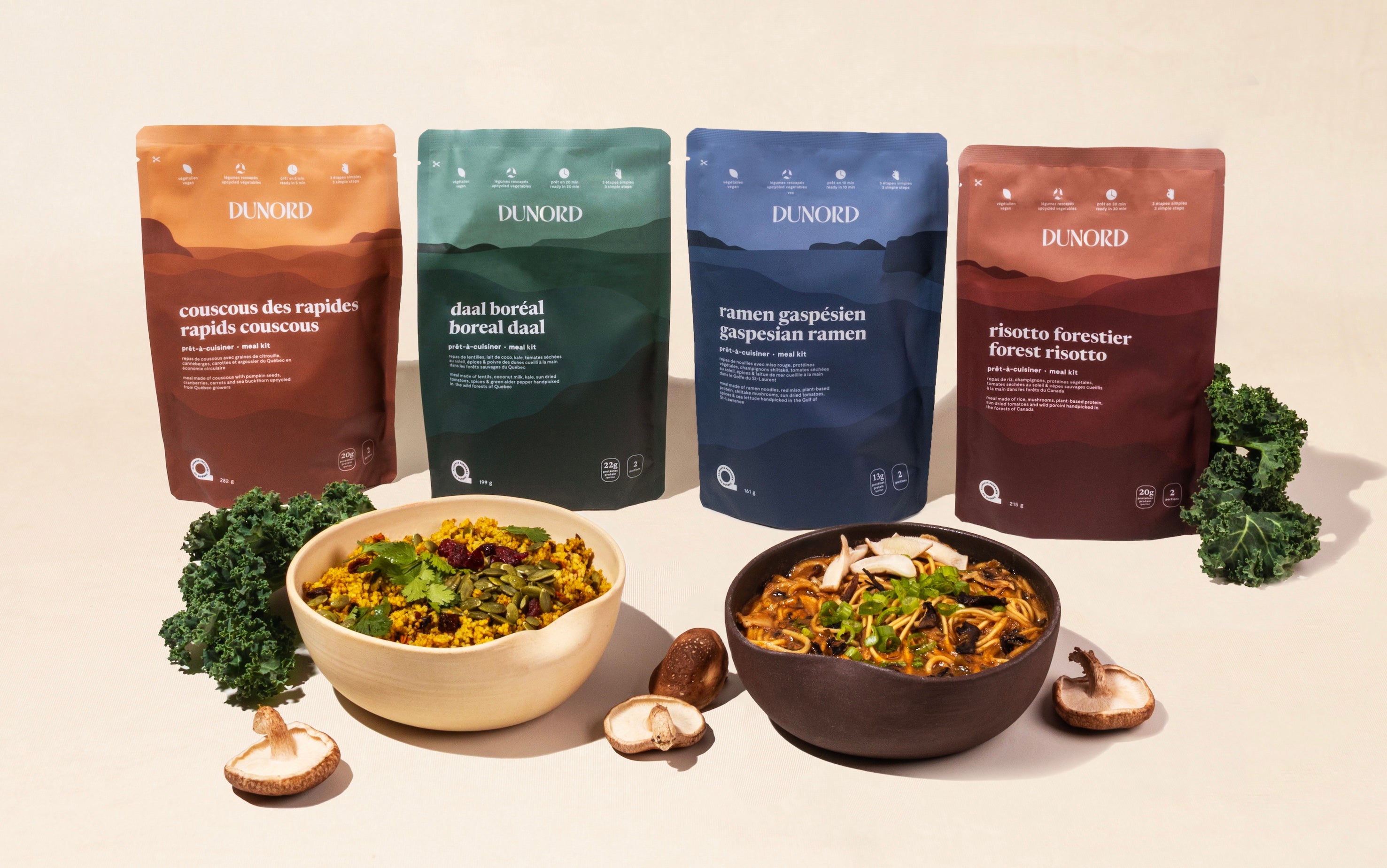 Plant-based meal kits, made from local farm surplus and inspired by the abundance of the boreal ecosystem.